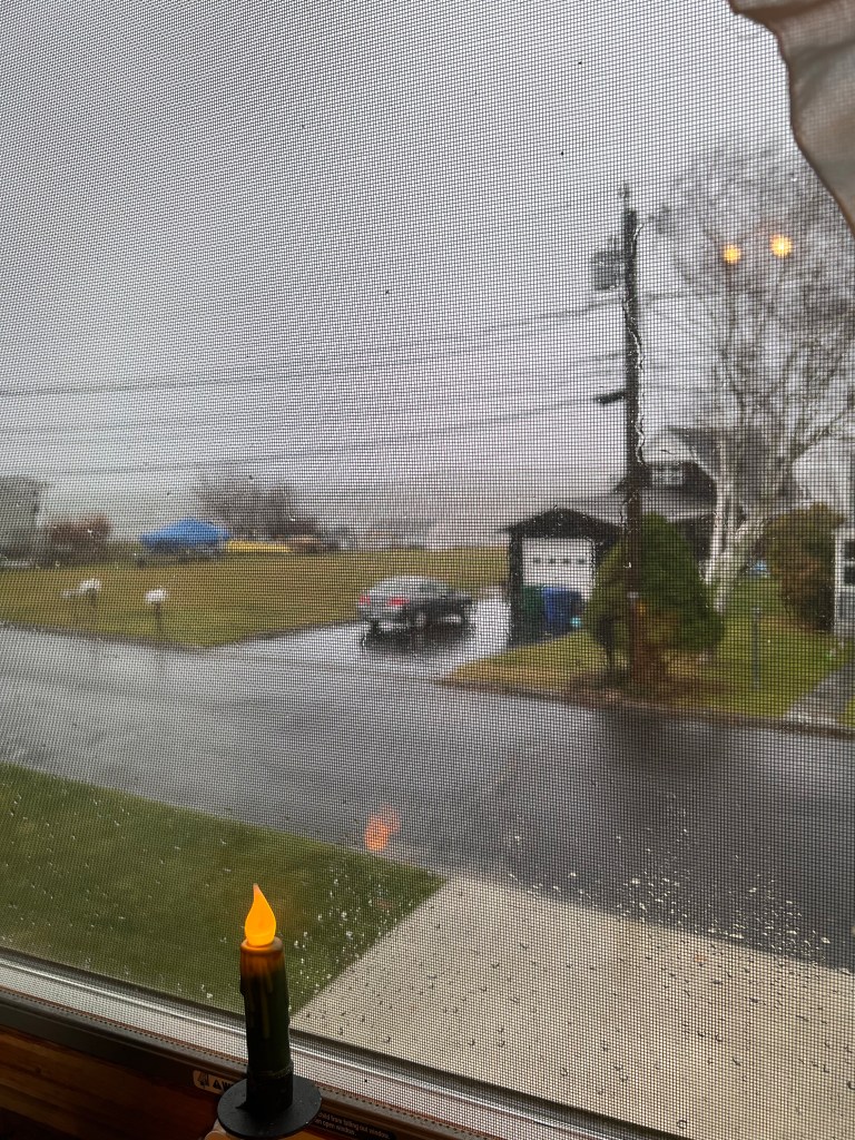 My attic veiw, I couldn’t capture the wild winds in the photo, but clearly it’s rainy