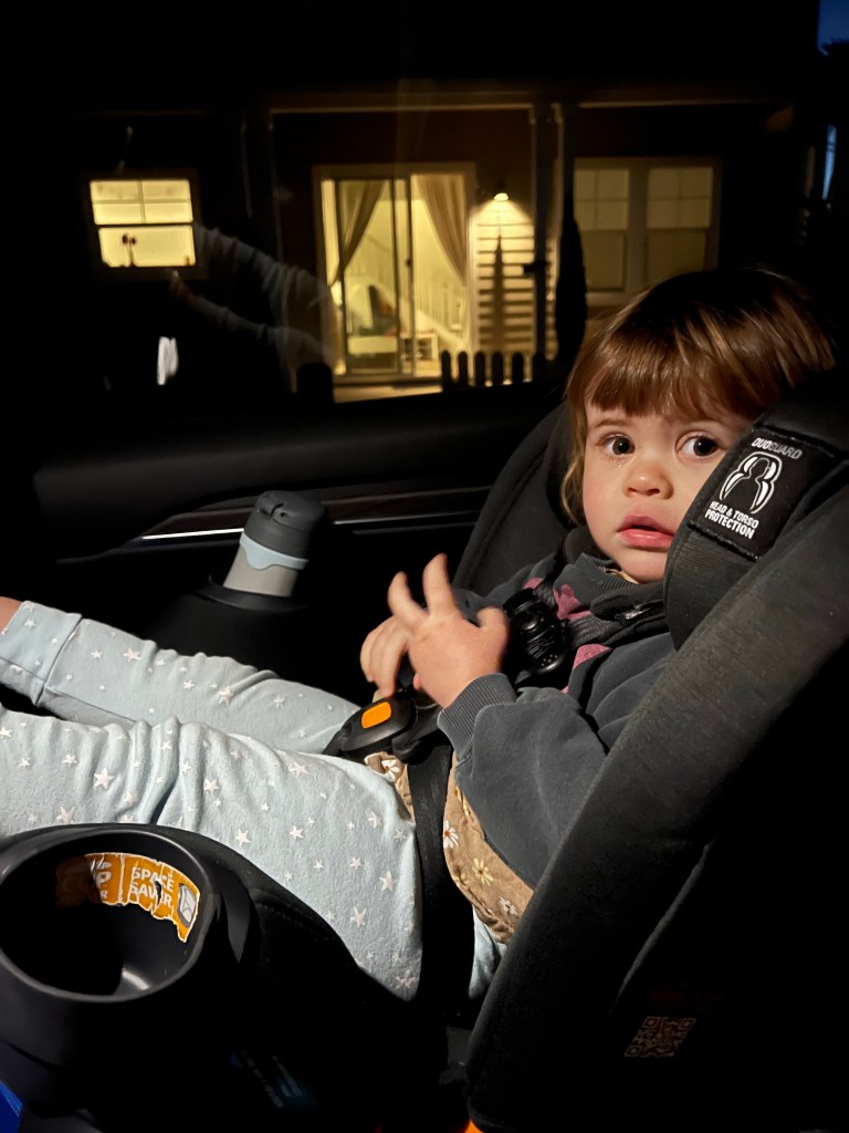 Tidy snacks, do they have those? We tried. We did pretty well actually. Did I mention that we were driving my daughter in law’s parent’s brand new Tesla? Only because it held a longer charge than their’s and we would only need to stop for one hour at halfway to charge one time. Did I mention it was a six hour start-to-finish drive with a two year old? Thats a lot of sitting in a car seat. Sandwiches wouldn’t work. (Have you watched a toddler eat a PB and J lately? It’s a whole thing). We stopped for breakfast, but in toddler time there are many long snacking hours before lunch.