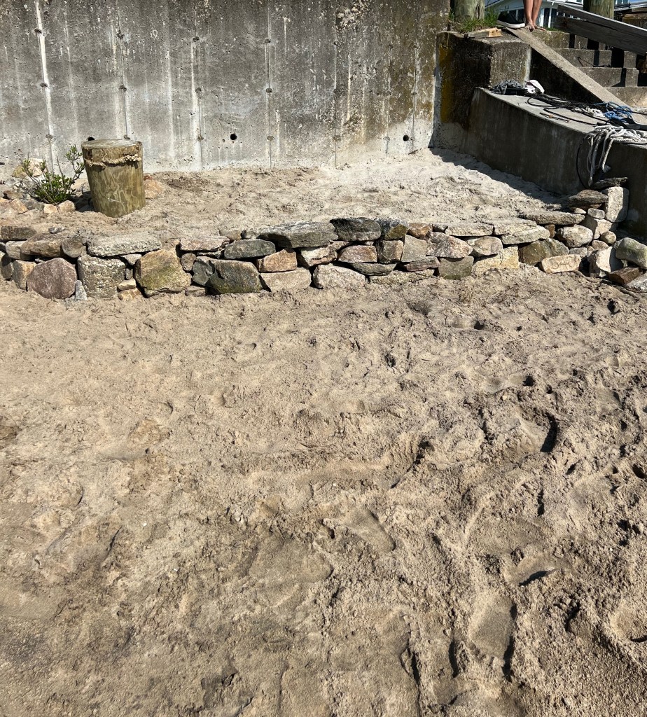 After yoga the sun came out. I spent the rest of my day outside in the garden and on the beach helping build a rock wall for a space next to where the dock will be rebuilt. I’m sunburned and exhausted. It’s a good feeling.