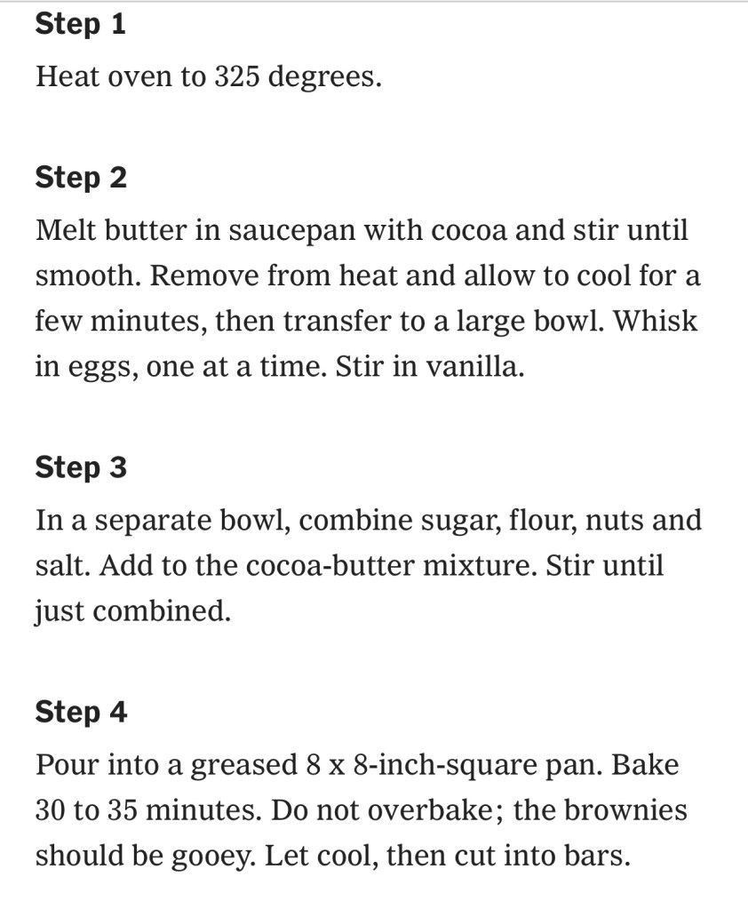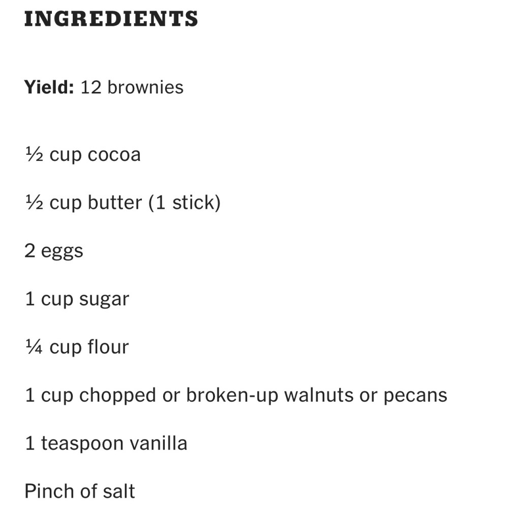 There was something about the list that made me laugh and at the same time want to follow its advice. A sweet surrender. So the brownies became my black cake.