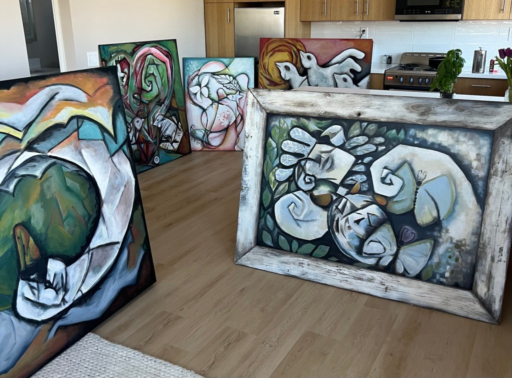 Today I am surrounded by sold and favorite paintings of mine. A fleeting moment for me to take in.