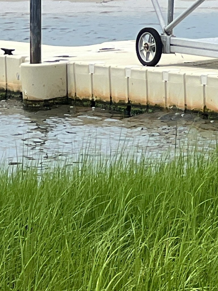 At the end of the dock, what the storm didn’t destroy, is a floating plastic eyesore of a jet ski launch. I’ll take a picture